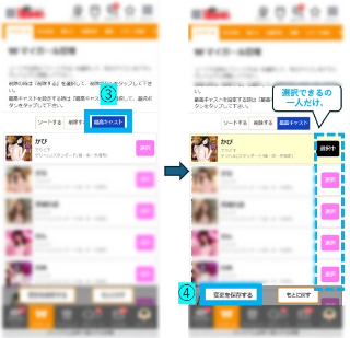 『最高キャスト』に選んだ画面を提示すると