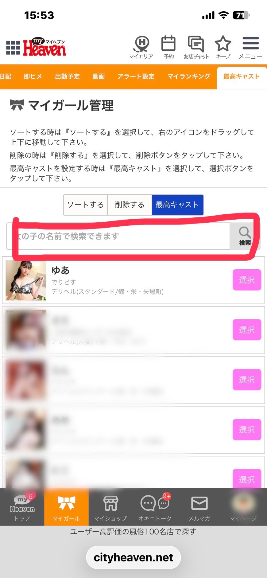マイヘブンから、マイガールを選択して頂き↓の